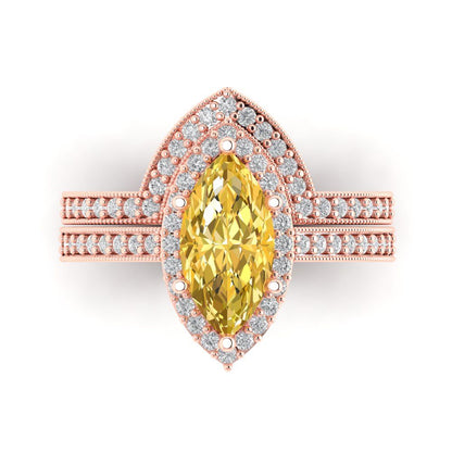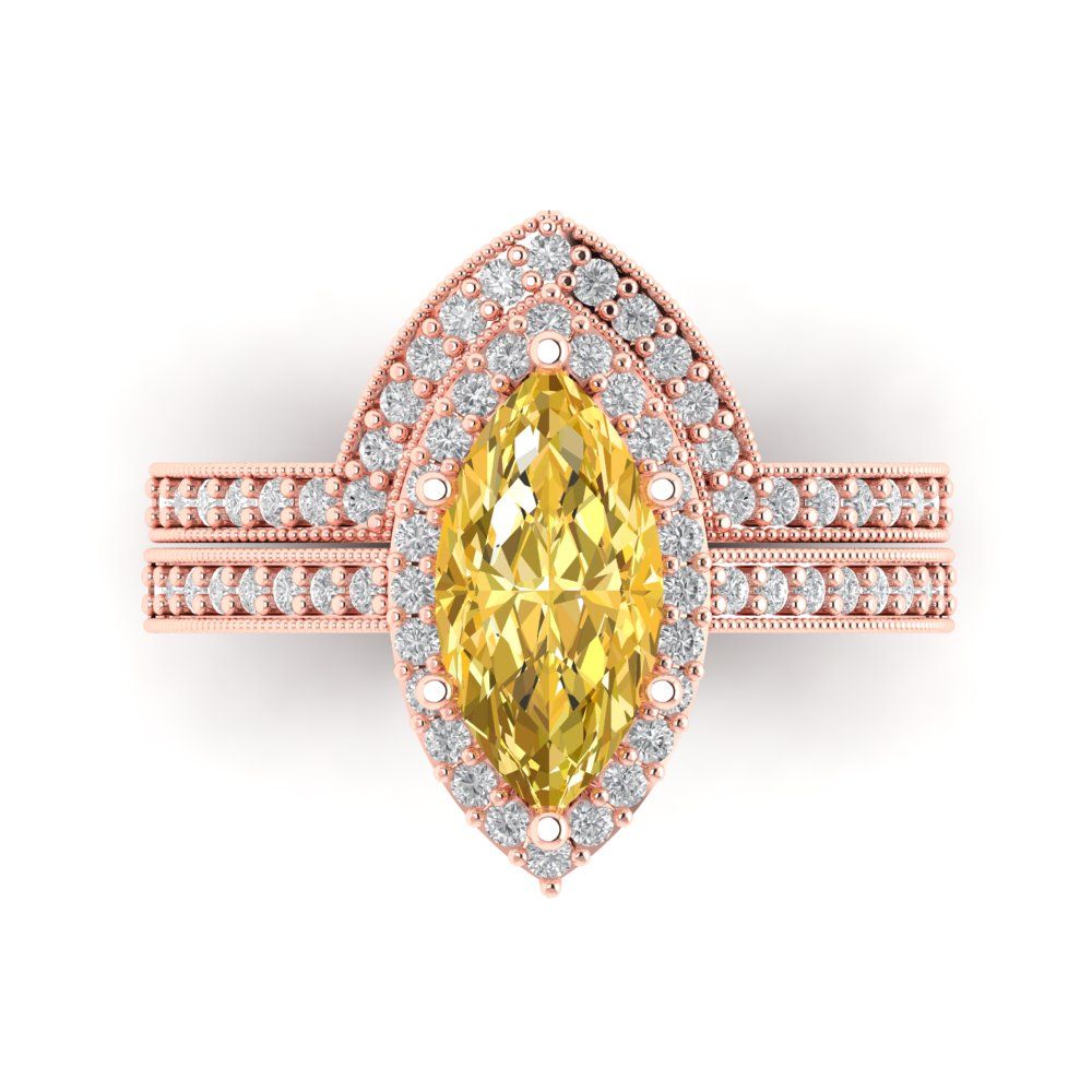 2.4875 cttw Marquise Cut Simulated Yellow Diamond Bridal Set - Solid Rose Gold Engagement Ring & Wedding Band