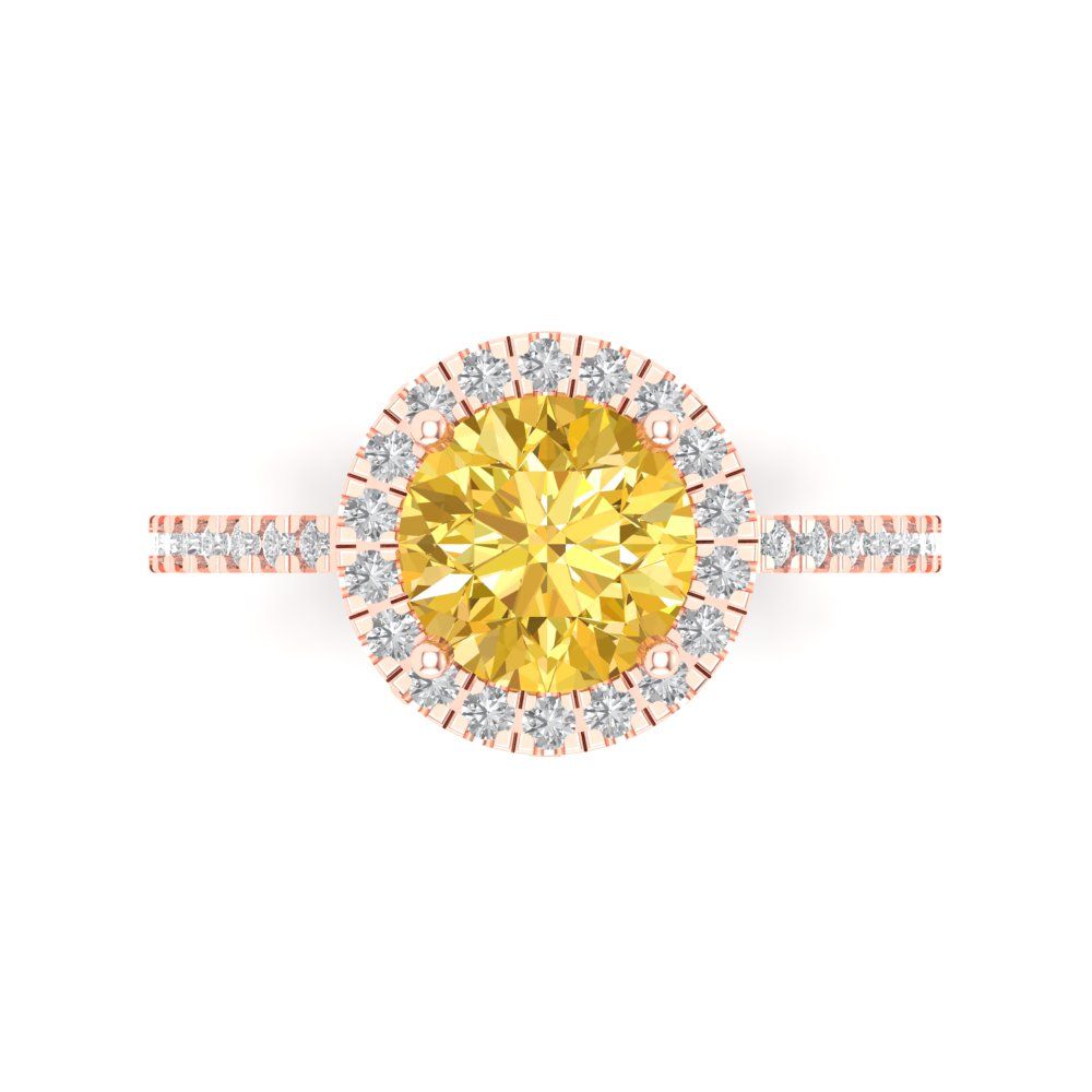 1.8 cttw Zirconia Simulated Yellow Diamond Solitaire with Zirconia Simulated Diamond Accents Engagement Ring - Solid Gold (VVS1, Round Cut,7.5mm)