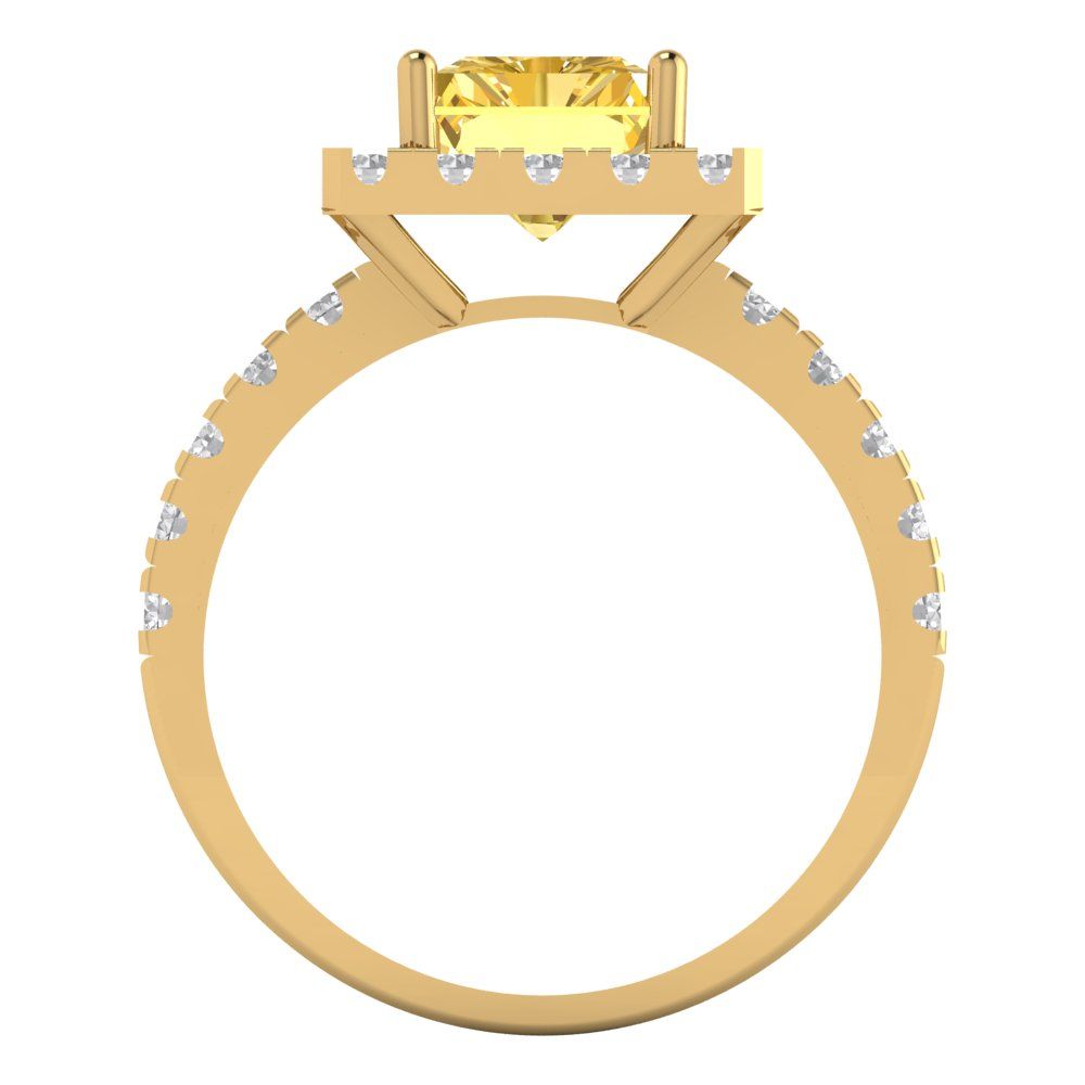 3.84 cttw Zirconia Simulated Yellow Diamond Solitaire with Zirconia Simulated Diamond Accents Engagement Ring - Solid Gold (VVS1, Emerald Cut,9x7mm)