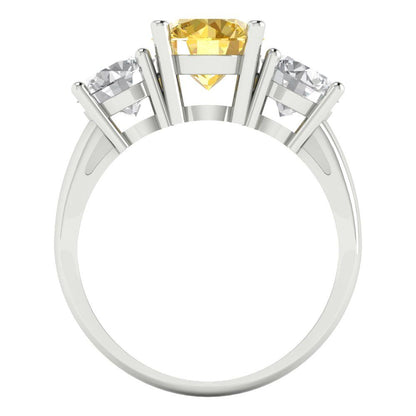 2.5 cttw Zirconia Simulated Yellow Diamond Three-Stone Engagement Ring - Solid Gold (VVS1, Round Cut,7.5mm)