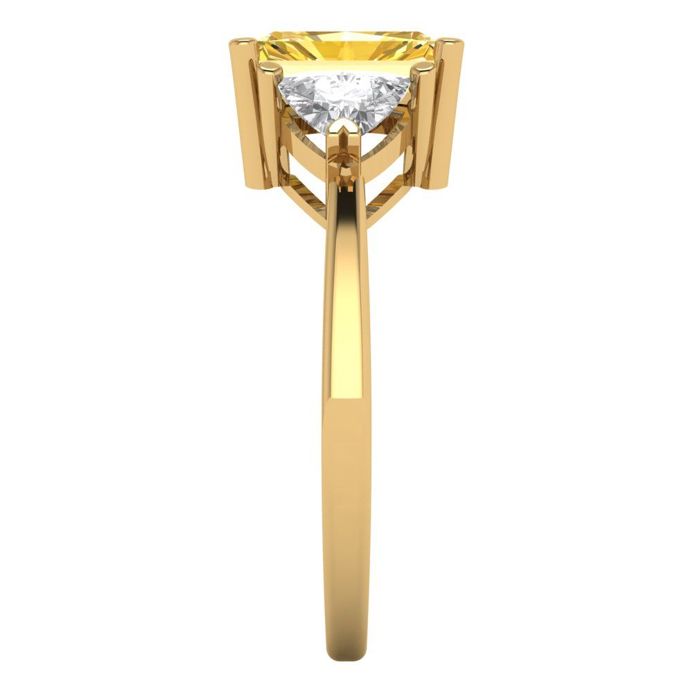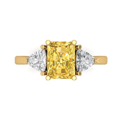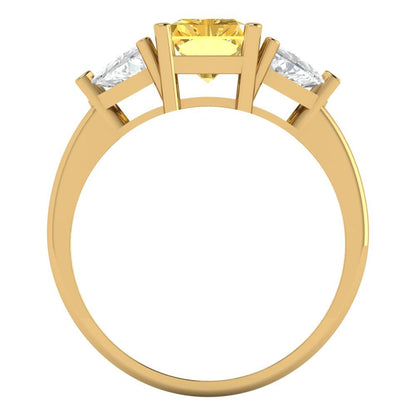 2.82 cttw Zirconia Simulated Yellow Diamond Three-Stone Engagement Ring - Solid Gold (VVS1, Emerald Cut,8x6mm)