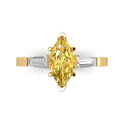 2 cttw Zirconia Simulated Yellow Diamond Three-Stone Engagement Ring - Solid Gold (VVS1, Marquise Cut,11x5.5mm)