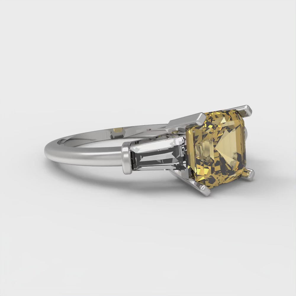 1.62 cttw Zirconia Simulated Yellow Diamond Three-Stone Engagement Ring - Solid Gold (VVS1, Square Emerald Cut,6.5X6.5mm)
