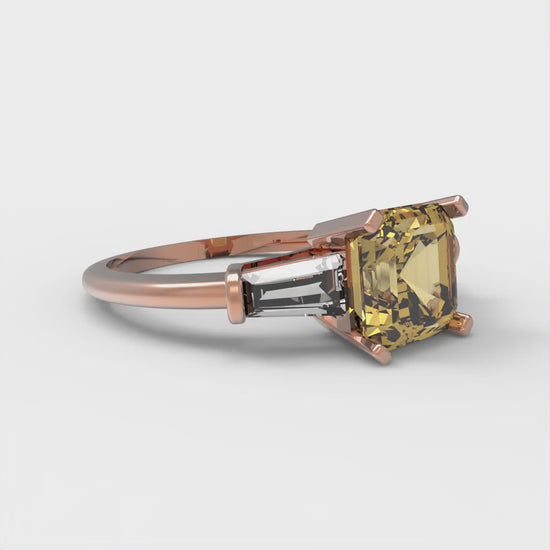 1.62 cttw Zirconia Simulated Yellow Diamond Three-Stone Engagement Ring - Solid Gold (VVS1, Square Emerald Cut,6.5X6.5mm)