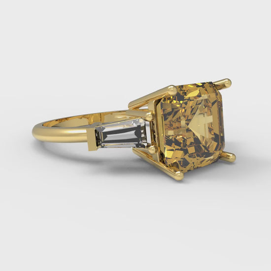 3 cttw Zirconia Simulated Yellow Diamond Three-Stone Engagement Ring - Solid Gold (VVS1, Asscher Cut,8.0mm)