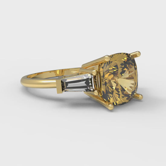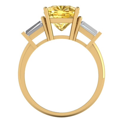 3 cttw Zirconia Simulated Yellow Diamond Three-Stone Engagement Ring - Solid Gold (VVS1, Cushion Cut,8.0mm)