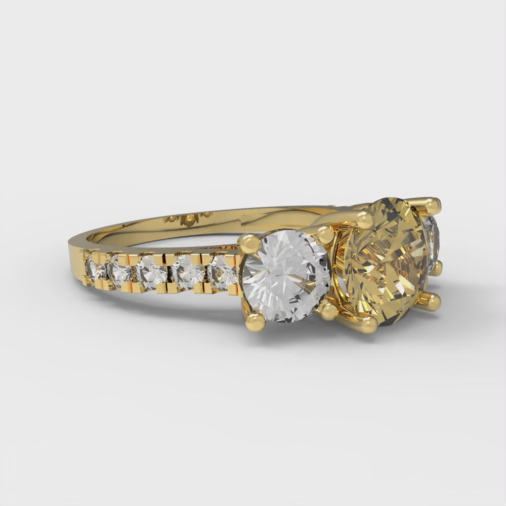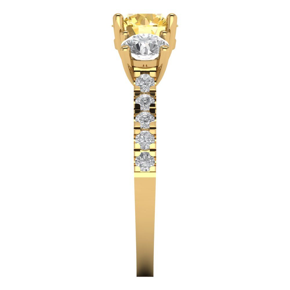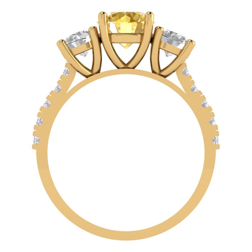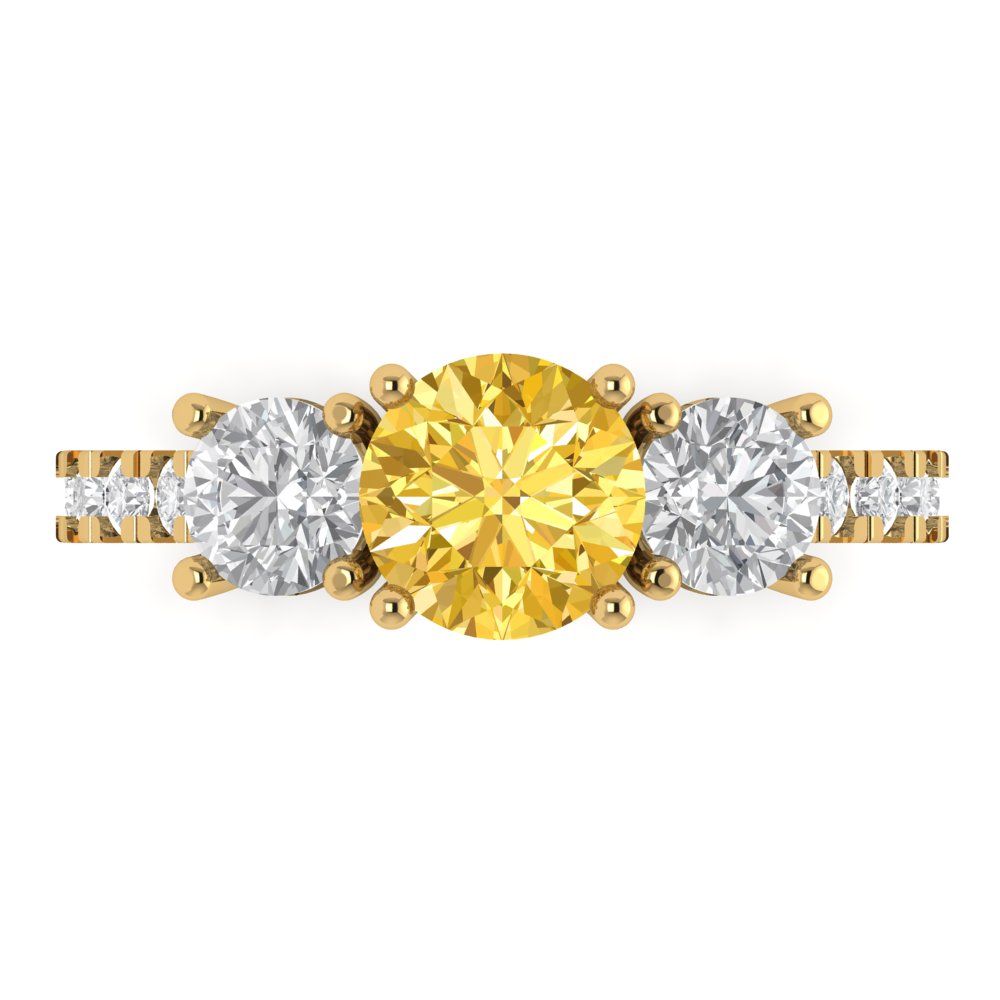 1.97 cttw Zirconia Simulated Yellow Diamond Three-Stone Engagement Ring - Solid Gold (VVS1, Round Cut,6.5mm)