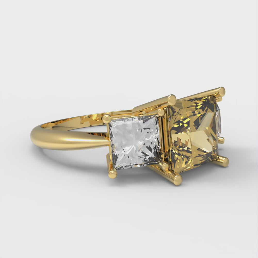 2.5 cttw Zirconia Simulated Yellow Diamond Three-Stone Engagement Ring - Solid Gold (VVS1, Princess Cut,6.5 mm)