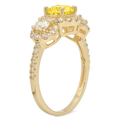 1.46 cttw Zirconia Simulated Yellow Diamond Three-Stone Engagement Ring - Solid Gold (VVS1, Round Cut,6.0mm)