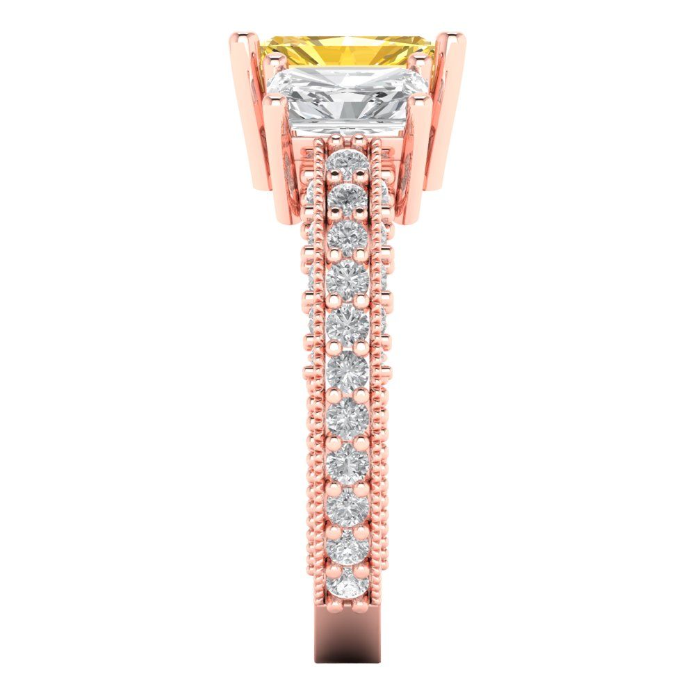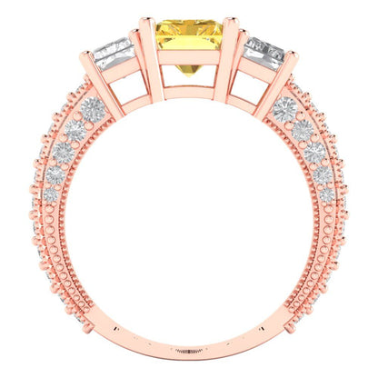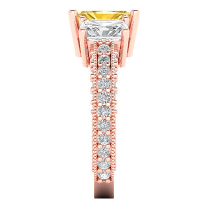 3.61 cttw Zirconia Simulated Yellow Diamond Three-Stone Engagement Ring - Solid Gold (VVS1, Emerald Cut,8x6mm)