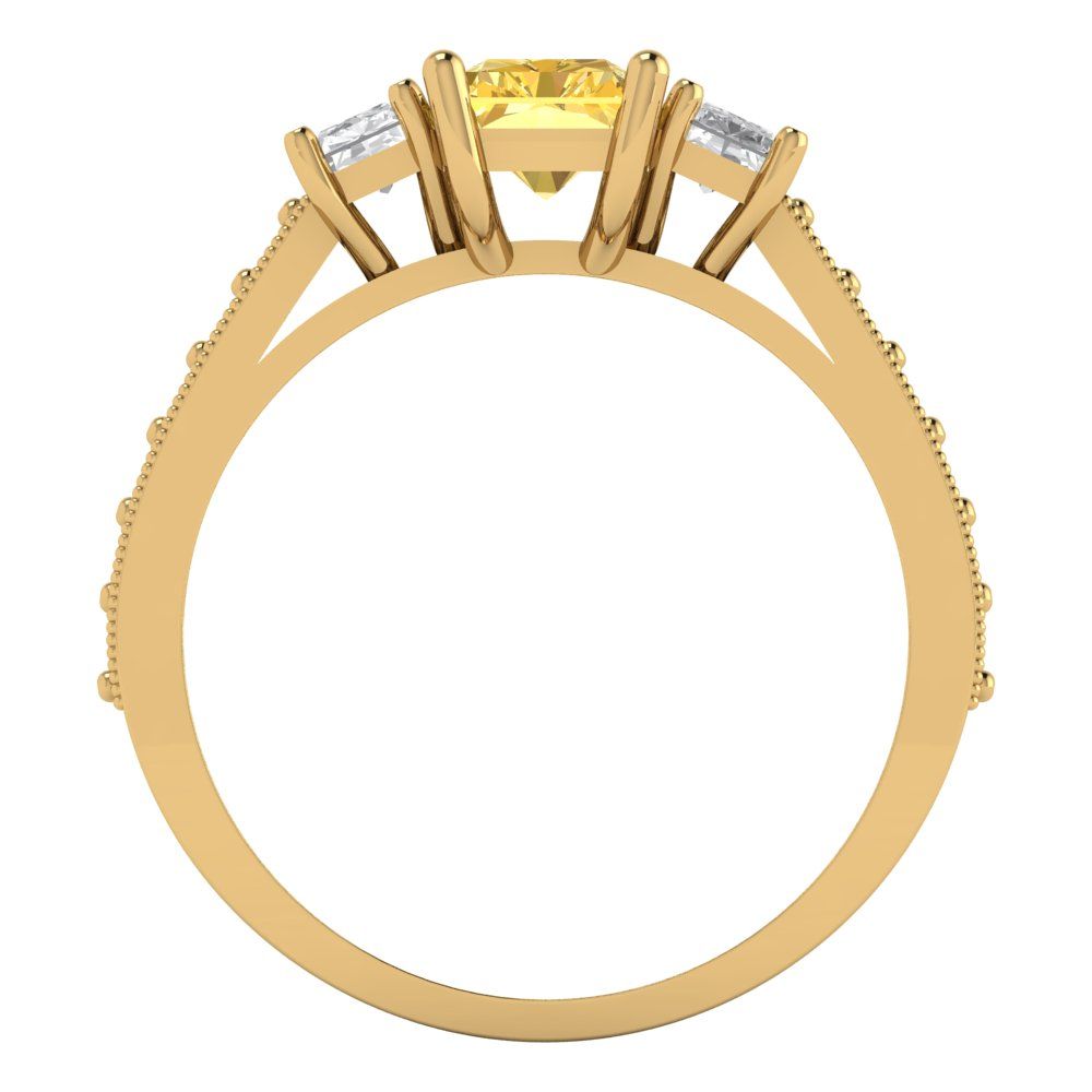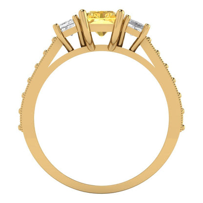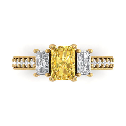 1.88 cttw Zirconia Simulated Yellow Diamond Three-Stone Engagement Ring - Solid Gold (VVS1, Emerald Cut,7x5mm)